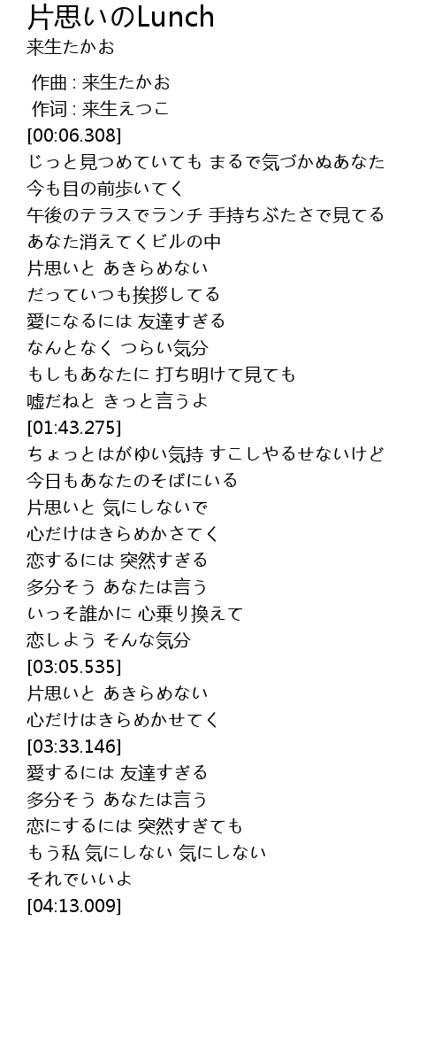 片思いのlunch Pian Si Lunch Lyrics Follow Lyrics